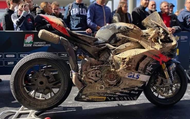 CIV Superbike al Mugello, la Ducati di Pirro coperta di fango: "Una gara di motocross..."
