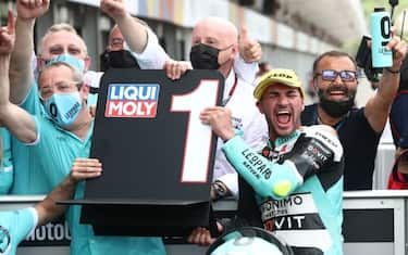 videoIl pilota milanese ha festeggiato in pit lane (avvisato dall'amico Quartararo) la vittoria dopo una gara durata solo 8 giri e sospesa a causa della pioggia. Sul podio anche il ceco Filip Salac e lo spagnolo Aron Canet. Non essendo stati percorsi i due terzi della distanza di gara il GP della Thailandia assegna metà punti.