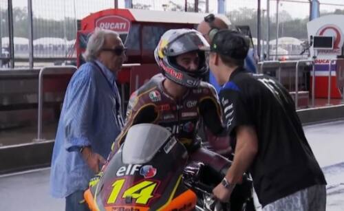 Dopo la grande vittoria sulla pista ancora asciutta di Dennis Foggia in Moto3, la pioggia comincia a cadere copiosa a Buriram a 8 giri dal termine della gara di Moto2, quando Tony Arbolino è in testa.