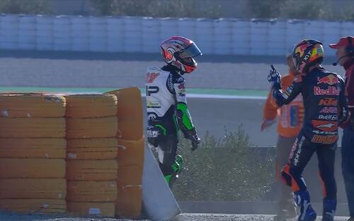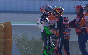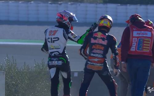 Brutto episodio nella terza sessione di libere, chiusa con una lite piuttosto accesa tra Kaito Toba e Jaume Masia. Finiti a terra dopo una carambola, i due dimostrano di avere punti di vista diversi sull'accaduto. Volano spintoni e qualche manata sul casco. Tutto il weekend della Comunità Valenciana è live su Sky e in streaming su NOW
