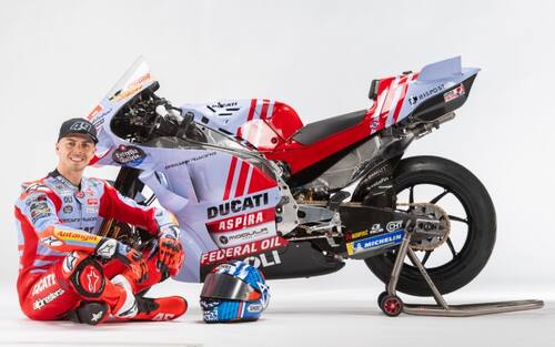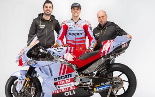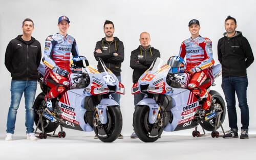 Il team Gresini ha presentato la livrea della Desmosedici affidata ad Alex Marquez e Fabio Di Giannantonio per il 2023: la nuova moto presenta un tocco di rosso in più rispetto al passato: al colore simbolo della Ducati è abbinato un azzurro lucido, leggermente perlato. "E' un giorno speciale, vogliamo essere pronti per la prima gara: sarà importante partire bene", il commento di Marquez. "L'obiettivo è essere sempre in top 10, ma possiamo puntare anche alla top 5: siamo carichi", le parole di Di Giannantonio