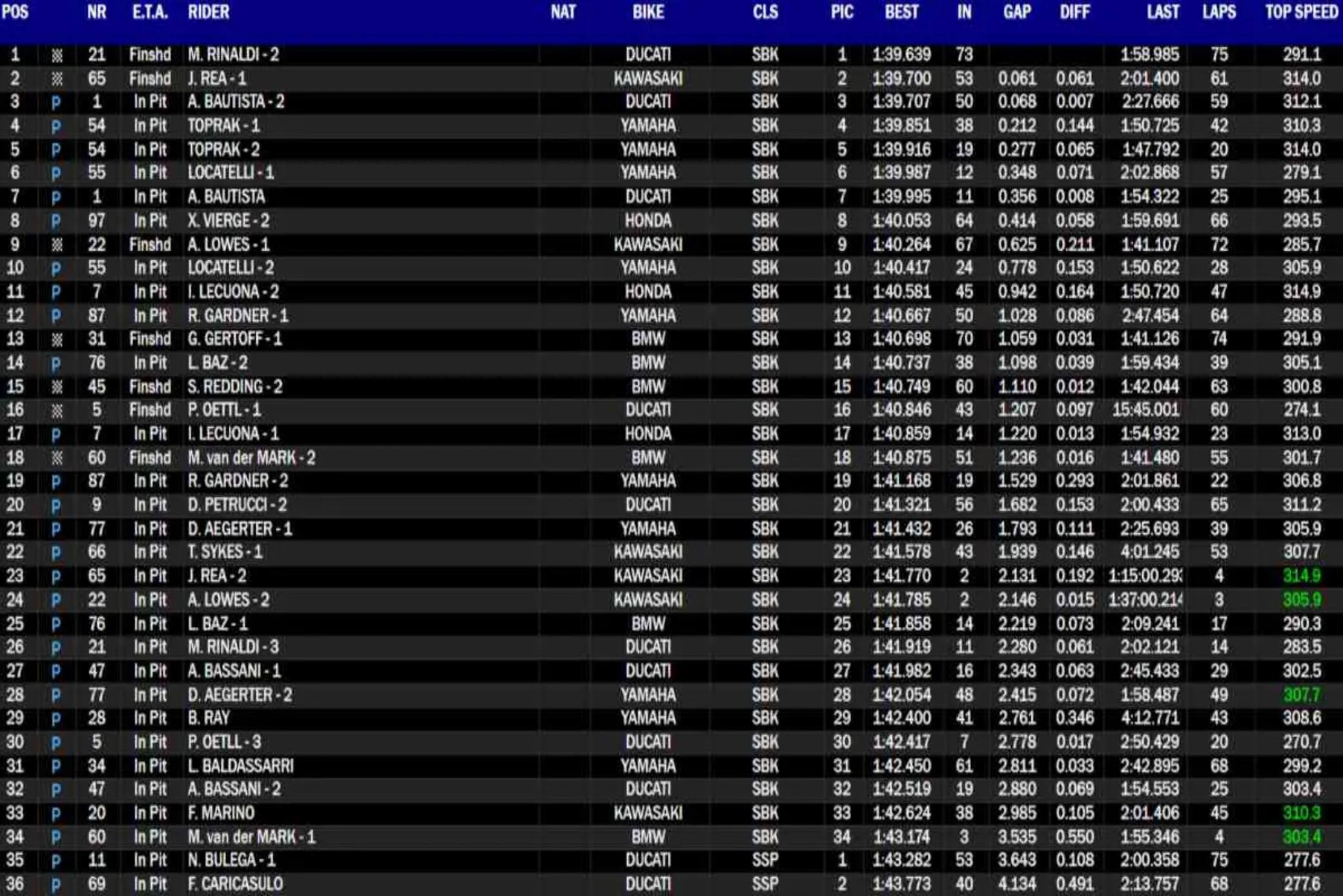 superbikeRinaldi a sorpresa è il più veloce nella prima giornata di test per la Superbike a Portimao. Il pilota Ducati Aruba ha precedeuto tutti con 1:39.639, ad appena 29 centesimi dal record della pista firmato Rea. Il 6 volte vincitore del titolo si è dovuto "accontentare" della seconda posizione, mentre il campione del mondo in carica Bautista ha chiuso 3°. I primi tre piloti sono racchiusi in appena 68 millesimi