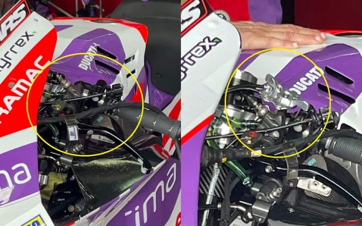 Nel 2022 il pilota del team Mooney VR46, Luca Marini, aveva avuto un blocco dell'abbassatore durante una gara, ma per sbloccarlo avrebbe dovuto staccare le mani dal manubrio. Cosa non certo facile quando stai guidando un bolide a 300 chilometri orari. Ecco che Ducati è subito corsa ai ripari. Come? La casa di Borgo Panigale ha spostato il comando dell'abbassatore dalla piastra di sterzo al semi-manubrio sinistro, vicino alla manopola. Una soluzione che consente di avere questo comando a farfalla a portata di pollice: se ci sarà un problema, il pilota potrà intervenire sull'abbassatore per sbloccarlo senza dover staccare le mani dal manubrio.