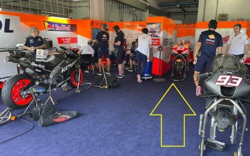 - La Rcv 2022 è stata poi "parcheggiata" in fondo al box, una sorta di pensionamento. Marquez ha quindi proseguito con le tre moto 2023: tra queste anche un prototipo full spec con nuovo motore, nuova carena e nuovo telaio