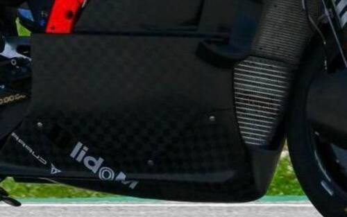 - Qui il dettaglio principale della carena a "effetto suolo", ovvero lo scalino sulla parte laterale di ispirazione Aprilia