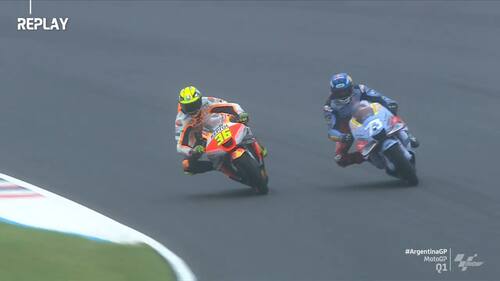 Alex Marquez è stato il protagonista delle qualifiche: non solo per la pole position, ma anche per la caduta alla fine del Q1. Il pilota spagnolo del team Gresini è scivolato nel tentativo di sorpassare Mir, ha provato a ripartire, ma ha dovuto accostare per un principio di incendio sulla sua moto dopo poche curve (subito domato dai marshall una volta sceso dalla sua Ducati). Poi nel Q2, con un'altra moto, ha piazzato il miglior giro. Ecco la foto-sequenza
