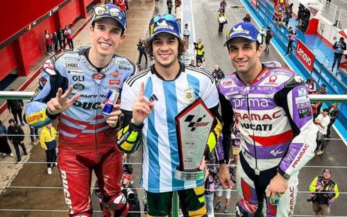 - Viene dall'academy di Valentino Rossi e come lui è salito sul podio con la maglia numero 10 dell'Argentina (firmata da Leo Messi) campione del mondo. Meritato, bello, addirittura giusto visto come si sono svolte le prime tappe di questo campionato. Godiamoci quest'altro giovane italiano vincente che apre un podio tutto Ducati, tanto per sottolineare che nelle moto siamo fighi, bravi, tosti, vincenti
