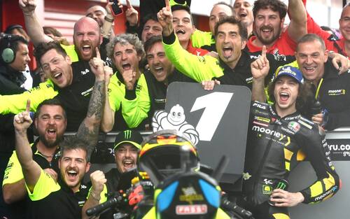 - Si è svegliato preoccupato per la pioggia, poi il warm-up bagnato lo ha confortato e ha guidato godendo e parlandosi per riuscire a mantenere la concentrazione e il ritmo. Qui aveva vinto sull'acqua anche la sua prima gara nel Motomondiale in Moto3 nel 2018. Un segno? Marco fa anche parte dei pochi che hanno vinto una gara in Moto3, in Moto2, in MotoGP. E scusate se è poco. Insomma, bravo lui e bene la squadra, capace e unita. 10