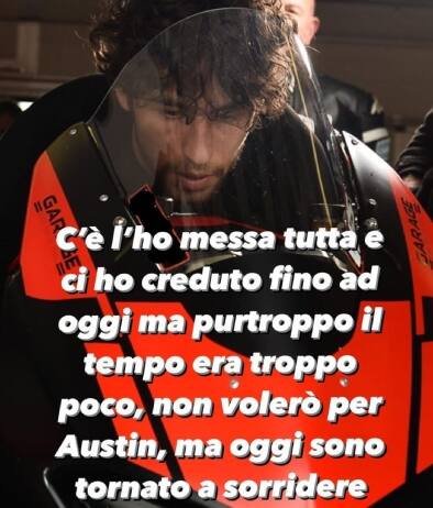 ducatiIl pilota della Ducati non riuscirà a scendere in pista nemmeno ad Austin, come comunicato dopo la visita medica decisiva sostenuta a Forlì col dottor Porcellini. Al suo posto correrà il collaudatore Pirro. Per Bastiani si tratta del terzo forfait su tre appuntamenti, dopo l'incidente che gli ha procurato la frattura della scapola durante la gara Sprint di Portimao, primo GP della stagione