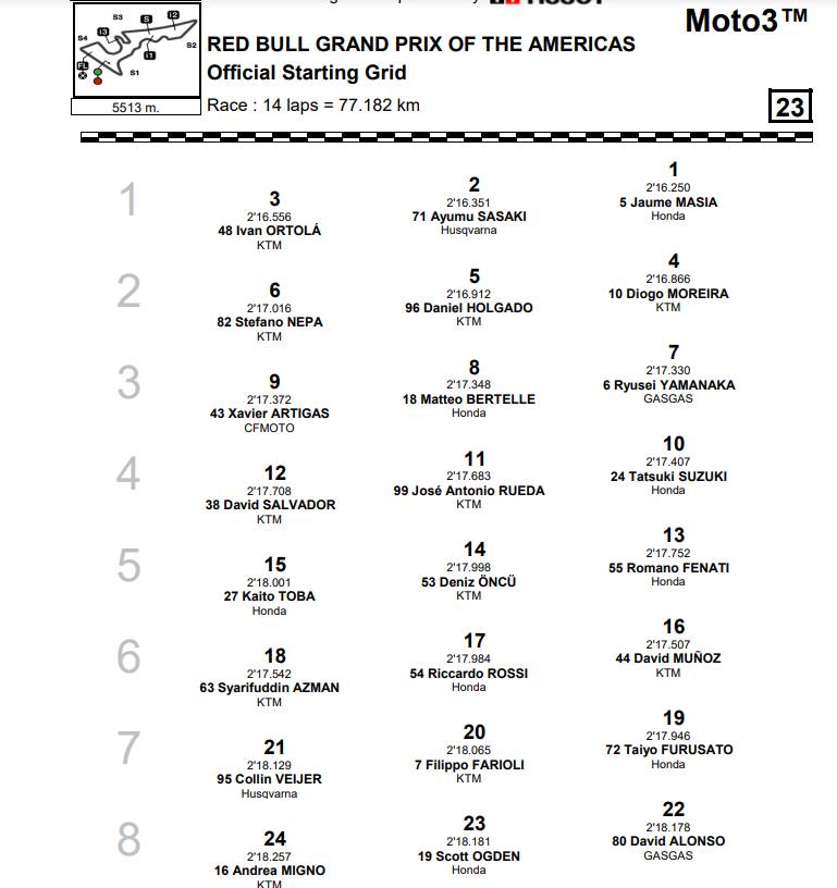GP Austin, la griglia di partenza della Moto3