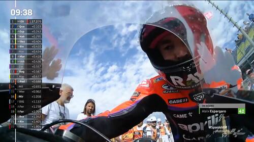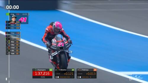 - Dopo essere rientrato ai box e aver cambiato moto, Espargaró è tornato in pista per il Q2 delle qualifiche più carico che mai. E, proprio all'ultimo tentativo, è riuscito a conquistare la pole position in 1:37.216