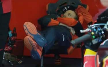 Il pilota della KTM, più veloce di tutti nella sessione inaugurale di libere in Francia, nel suo box mentre si rilassa prima di tornare in pista. Ma ci riuscità davvero in quella posizione? Tutto il weekend in diretta su Sky Sport MotoGP, Sky Sport Uno e in streaming su NOW