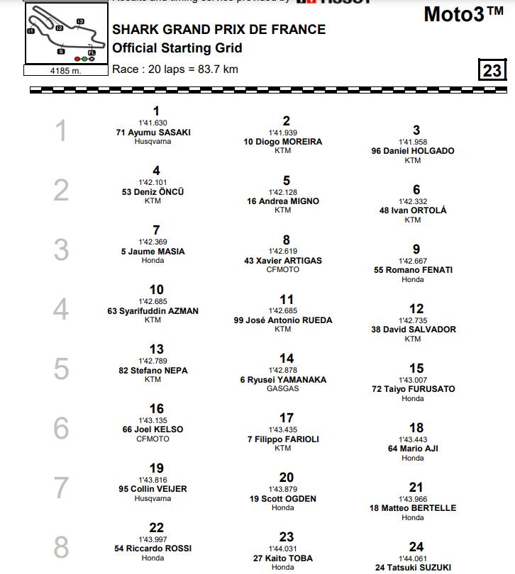 moto3Quarta pole stagione per Ayumu Sasaki a Le Mans: il pilota giapponese precede Moreira e Holgado. Quinto Migno, scivolato in seconda fila a Q2 concluso dopo un errore nel conteggio dei tempi