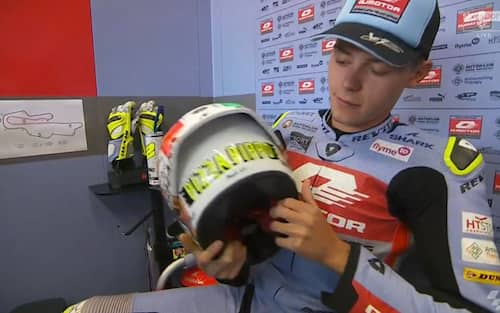 Un casco molto italiano e "appetitoso" per il pilota del team Gresini che scende in pista al Mugello con una livrea che riproduce una pizza, una "Pizza Pippo" con tanti ingredienti. Tutto il weekend tutto in diretta su Sky Sport Uno, Sky Sport MotoGP e in streaming su NOW