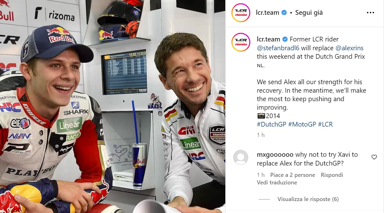 LCR HONDAStefan Bradl al posto dell'infortunato Alex Rins con LCR Honda nel prossimo di GP di Assen. Per il pilota tedesco sarà un ritorno, avendo già corso per Cecchinello tra il 2012 e il 2014. Tutto il weekend sarà live su Sky e in streaming su NOW