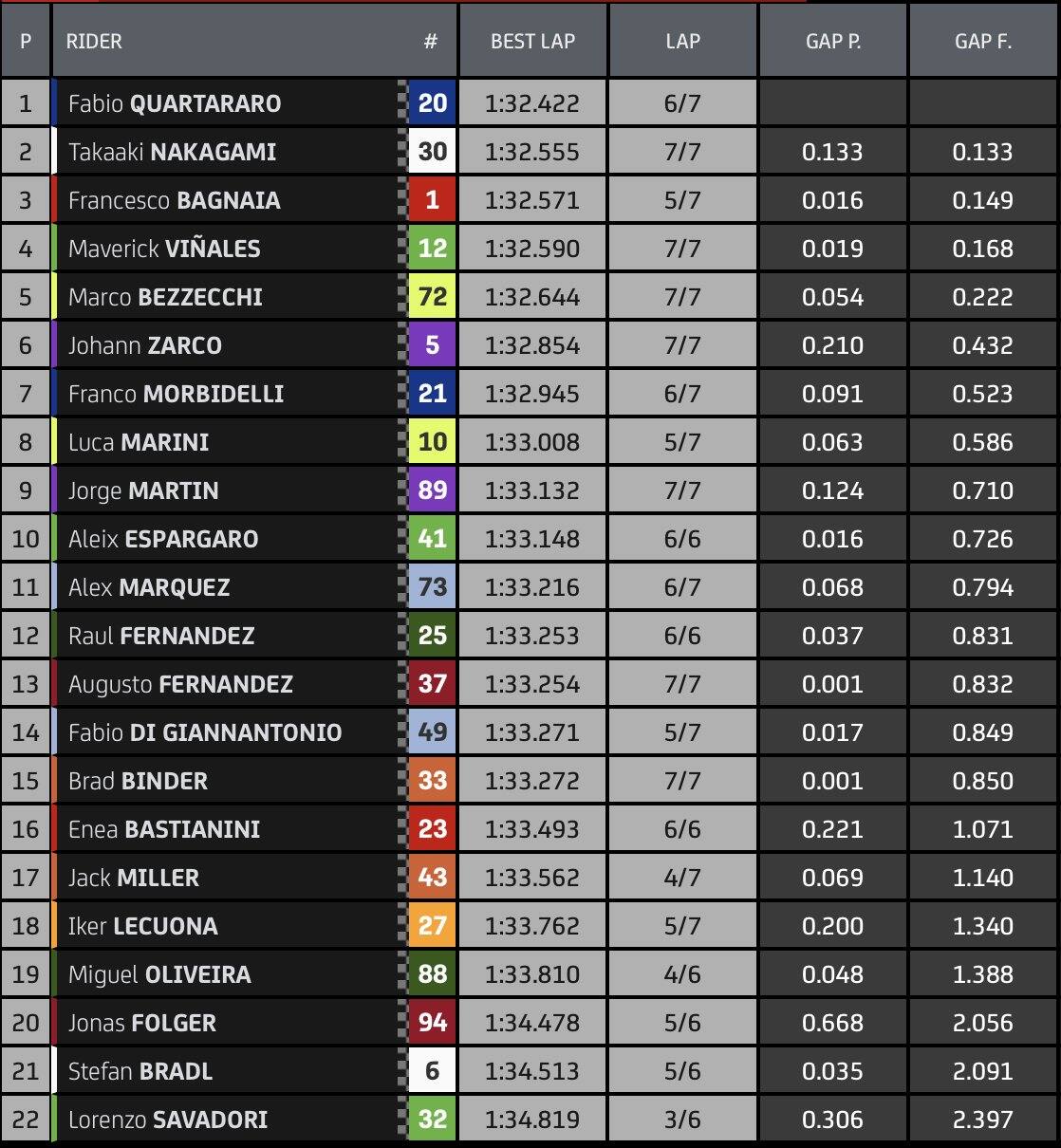 assenNonostante il dolore per la frattura all'alluce, Fabio Quartararo strappa il miglior tempo nel warm up di Assen, chiudendo in 1'32''422 davanti a Nakagami, Bagnaia, Vinales e Bezzecchi. In Top-10 anche Morbidelli e Marini. Oggi la gara in diretta alle 14 su Sky Sport Summer, Sky Sport MotoGP e in streaming su NOW