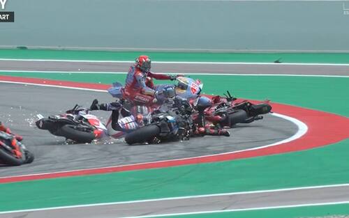 - Dopo la maxi carambola, Bagnaia è caduto da solo in un altro punto della pista (i due episodi non sono collegati).