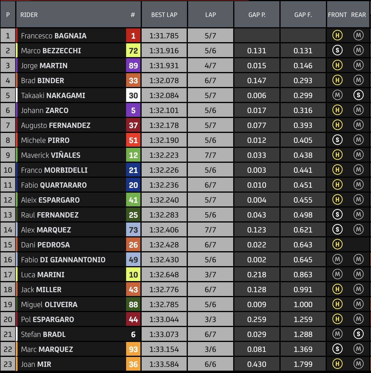 MotoGP, i risultati del warm up a Misano: Bagnaia il più veloce, Bezzecchi 2°