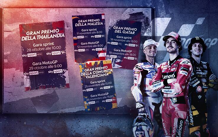 MotoGP, gli orari italiani delle ultime quattro gare su Sky e NOW: