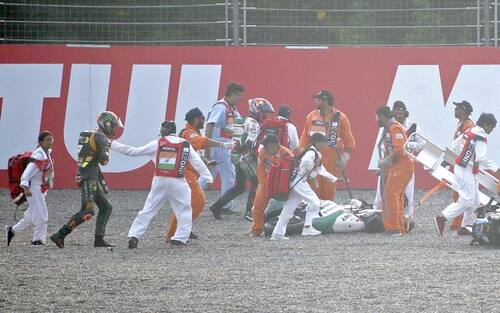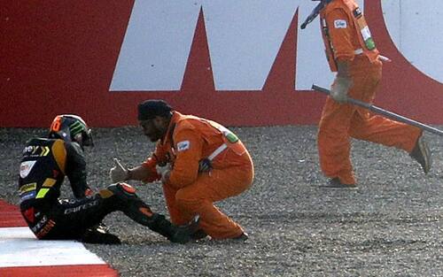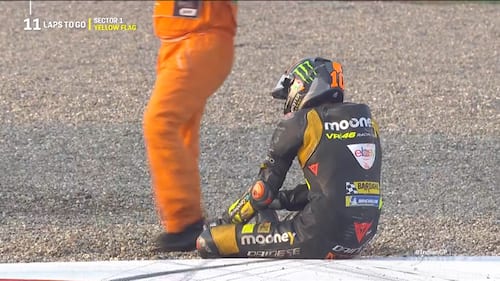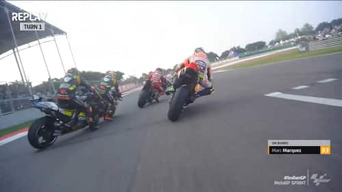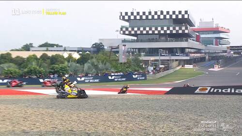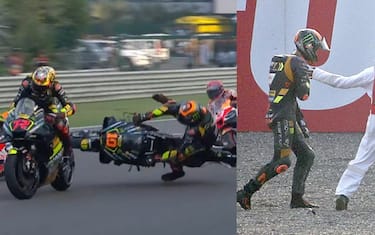 - Marini, che partiva dalla 4^ casella, è andato lungo alla prima staccata dopo il semaforo verde e ha centrato il suo compagno di squadra Bezzecchi, cadendo in maniera piuttosto violenta sull'asfalto
