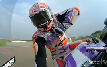 Galvanizzato dalla sua reazione in un momento difficile della gara, Martin ha poi spiegato che cosa ha causato le sue difficoltà nelle battute conclusive del gran premio indiano. "La scelta della gomma media posteriore non è stata azzeccata, ho faticato a tenere il passo per tutta la corsa, e credo che sia questo il motivo all’origine dei mei problemi. La fatica è aumentata e quando sono tornato ai box, sentivo che mi stava succedendo qualcosa". Jorge ha anche analizzato l’altro episodio saliente della sua domenica, la tuta slacciata che l’ha obbligato a una funambolica reazione in corsa, per richiuderla, procurandosi un ulteriore picco di stress. "Non ho chiuso correttamente la tuta alla partenza. Dopo otto, nove giri ho iniziato a sentire che si era aperta, anche se per poco, quindi ho cercato di finire la corsa comunque, sperando che nessuno se ne accorgesse”. "Poi cos’è successo?", gli chiedono. "Ho visto che sullo schermo si vedeva e ho dovuto chiuderla per forza", forse pensando a quanto era successo a Quartararo un anno fa quando fu penalizzato di tre punti per un episodio analogo (ma il francese concluse la gara con la tuta completamente aperta sul torace).