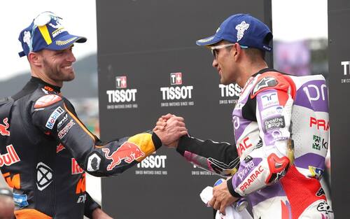 - Jack (8) finalmente positivo (4°) fino al termine, lui che di solito finisce le gomme prima degli altri. L'australiano non è riuscito a salire sul podio per la voglia di Pecco Bagnaia di salirci lui sul terzo gradino, obiettivo minimo e insoddisfacente, ma unico alla sua portata oggi.