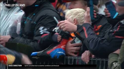 - Pioggia e raffiche di vento hanno condizionato la domenica di Phillip Island, con la gara di Moto2 più che dimezzata e la MotoGP che, dopo il warm-up, non è più scesa in pista. La direzione gara ha deciso di annullare la Sprint Race (che era in programma alle 4 ora italiana) per salvaguardare la sicurezza dei piloti. Che dopo l'annuncio si sono intrattenuti con i fan