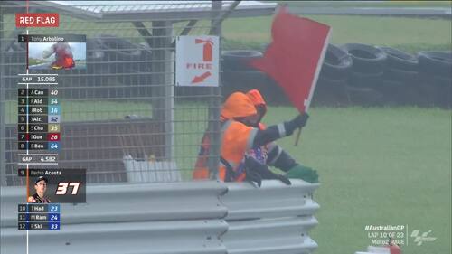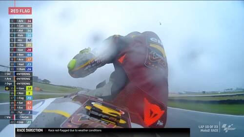- Quando mancavano 14 giri alla fine della gara Moto2 è stata sventolata la bandiera rossa