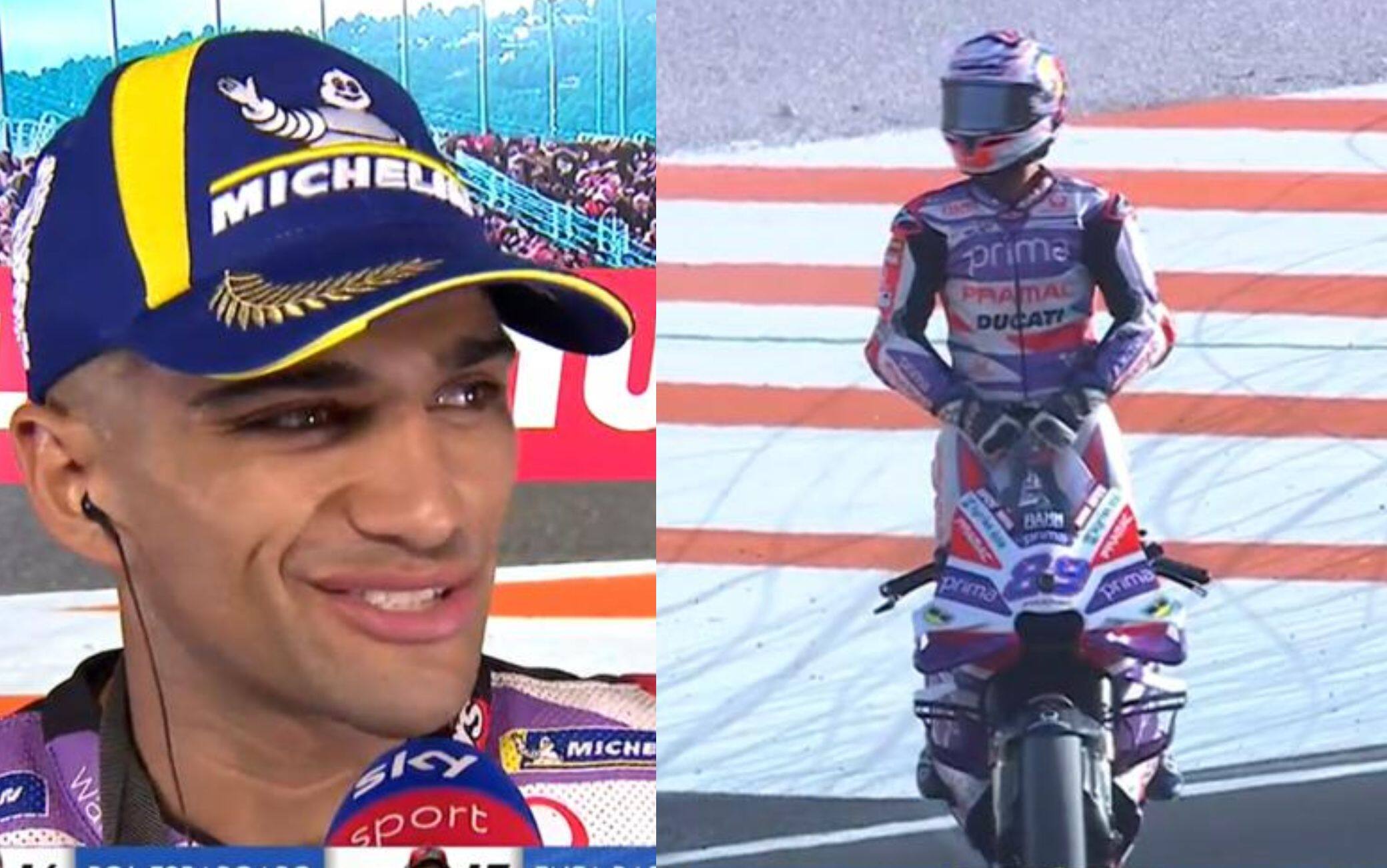 Da 21 a 14 punti, un'altra Sprint vinta, una sola gara lunga al termine del Mondiale e tutto ancora aperto. Jorge Martin può ancora sognare: "È stata una gara fantastica, sulla tuta ho anche l'autografo di Marquez… (dice scherzando e mostrando il retro della sua armatura). Domani la indosserò sperando mi porti fortuna. Comunque è stata una bella partenza, non avevo nulla da perdere e tutti siamo entrati col coltello tra i denti - ha detto a Sky Sport dopo la Sprint -. Sicuramente non mi trovavo benissimo con la media davanti, stavo quasi cadendo in tutte le curve a sinistra, ma mi sono detto 'o vinciamo o esco'. Poi alla fine ho spinto molto per mantenere il distacco da Binder, e non è stato semplice. Spero domani con altre gomme di andare più forte".