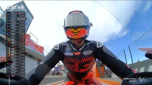 Nei test di Valencia riflettori puntati su Marc Marquez, che ha esordito con la Ducati del team Gresini: sensazioni subito positive per il rider di Cervera, come testimoniato da un eloquente sorriso dopo i primi giri. L’otto volte iridato ha chiuso col 4° tempo in 1:29.424, a 171 millesimi dal miglior crono di Vinales. "Dai dati nessuno fa come lui curva 8: sembra che non freni, è incredibile", il commento di Bastianini. Ecco le immagini più significative