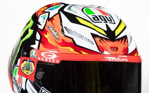 - Anche nel 2024 Di Giannantonio, grande tifoso della Roma, porterà sempre con sè in pista il lupetto del suo club del cuore, presente nella parte posteriore del casco