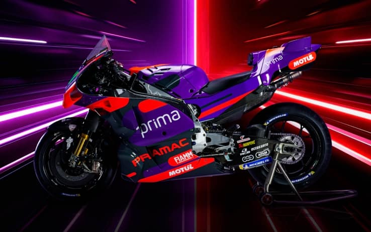 Il team Pramac di Jorge Martin e Franco Morbidelli ha svelato le nuove moto per la stagione MotoGP 2024. L'unveiling si è svolto al Bahrain International Circuit, dove sabato 2 marzo si correrà la prima gara del campionato di Formula 1 su Sky e in streaming su NOW. Nella nuova livrea (vedi foto sotto) non c'è più il bianco, con il viola e il rosso a farla da padroni.