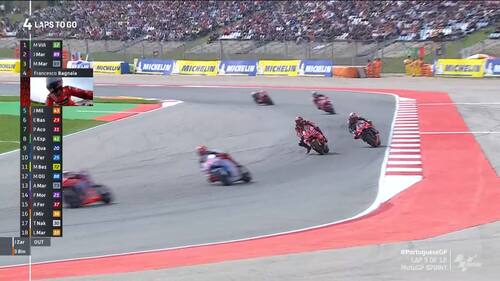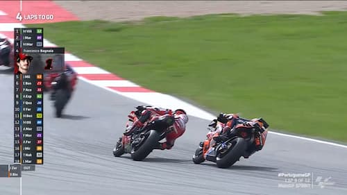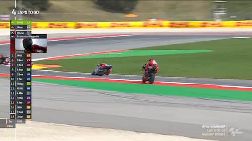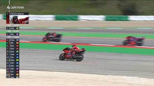 - Bagnaia ha chiuso alla fine al quarto posto, conservando comunque la leadership nel Mondiale grazie al sorpasso di Marc Marquez ai danni di Martin, rispettivamento 2° e 3° alle spalle del vincitore di giornata, Maverick Vinales