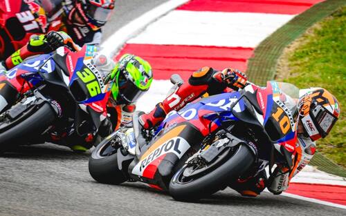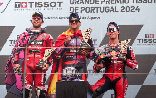 - Una domenica quasi del tutto iberica con 7 piloti spagnoli su 9 sui tre podi portoghesi con le eccezioni delle prime volte con la vittoria di Aron Canet nella Moto2 e dell’incredibile podio - alla seconda gara della sua vita in MotoGP - per Pedro Acosta. Una gara tesa e piena di colpi di scena, tranne che per la vittoria