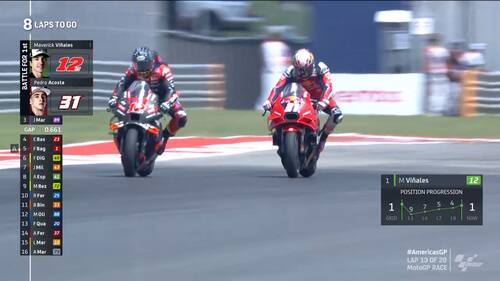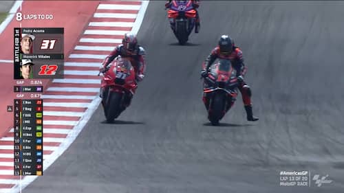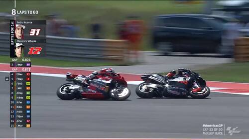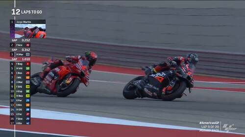 - Aprilia scatenata ad Austin: Vinales lancia l'inseguimento ad Acosta, che dopo qualche resistenza non può nulla contro lo strapotere del connazionale. Maverick si invola e diventa il 5° pilota nella storia che vince con 3 marche diverse (Suzuki, Yamaha, Aprilia)