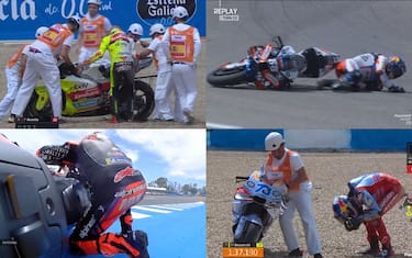 Nel corso delle pre-qualifiche di Jerez, conquistate da Pecco Bagnaia con il nuovo record della pista, sono caduti ben 9 piloti. Incidenti per Bezzecchi, Raul Fernandez, Vinales, Quartararo, Alex Marquez, Pedrosa, Miguel Oliveira, Miller e Binder: fortunatamente per nessuno di loro ci sono state delle conseguenze fisiche. Di seguito le immagini delle cadute