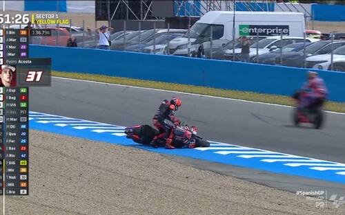 - Ben 9 cadute nel pomeriggio di Jerez, con i piloti che sono stati impegnati nelle pre-qualifiche (dominate da Bagnaia con il nuovo record della pista). Fortunatamente per nessuno dei rider ci sono state conseguenze fisiche e sono tutti pronti per proseguire il weekend spagnolo