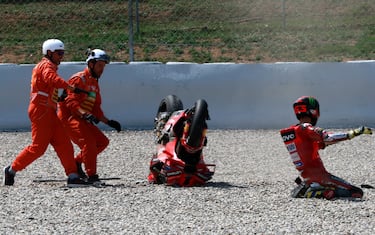 - Finale amarissimo della Sprint in Catalunya per Pecco Bagnaia, caduto all'ultimo giro mentre era al comando della gara e indirizzato alla vittoria. Il pilota Ducati ha perso aderenza in curva 5 ed è finito nella ghiaia