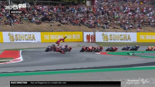 - Dopo la gara Bagnaia ha analizzato su Sky Sport il sorpasso: "Ieri sono caduto per aver fatto la curva più piano. Ho pensato che avrei dovuto superare lì perché potevo esagerare un po' di più. Ero consapevole di essere forte alla 4, quindi ho pensato di buttarmi dentro alla 5 perché meno restavo dietro a Jorge meglio era per la gomma anteriore. Quel punto l'ho scelto apposta, volevo sfatare questa curva e il mito che non finisco le gare a Barcellona".