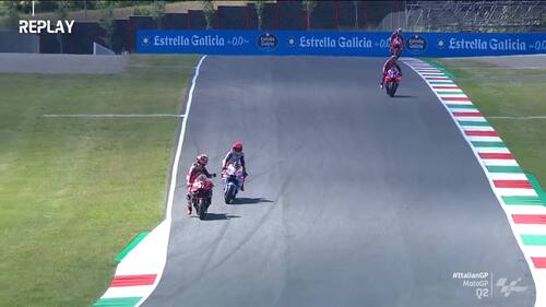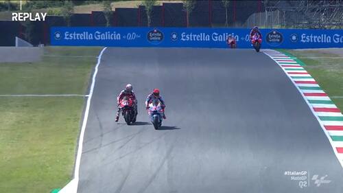 - Gioco di scie al Mugello, con Marc Marquez che nel corso del Q2 si è preso un rischio con Acosta per avere un "gancio" migliore. Lo spagnolo ha frenato per far passare il pilota Ktm, con quest'ultimo che è riuscito a evitare il contatto per pochi centimetri