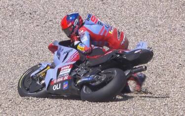 - Dopo la scivolata Marquez ha provato a rialzare la sua Ducati per ripartire