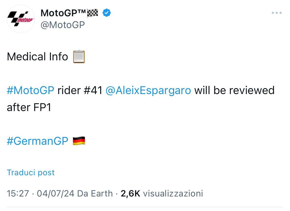 Espargaro e l'infortunio alla mano: "Fa male, ma provo a correre il GP Germania"