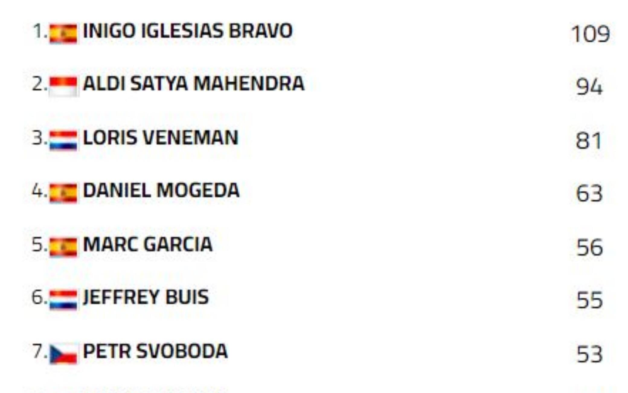 Una buona prestazione vale il quinto posto a Federico Caricasulo, seppur a sedici secondi dal vincitore. Sesta posizione per Lucas Mahias in volata su Marcel Schroetter, in top-10 anche Tom Booth-Amos, Glenn Van Straalen e Niki Tuuli. Lorenzo Baldassarri ha conquistato l’ultimo punto disponibile piazzandosi quindicesimo, mentre Simone Corsi è stato coinvolto in una caduta lottando per la decima posizione. 23° Raffaele De Rosa seguito da Federico Fuligni; Gabriele Giannini è ripartito dopo una scivolata e ha chiuso 26° davanti a Niccolò Antonelli, coinvolto in un incidente.