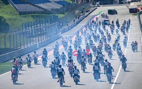 Dalle MotoGP vintage di Silverstone ai motorini d'epoca del Red Bull Ring. Il giovedì di Spielberg è stato caratterizzato da un gustoso antipasto retro, un giro sul circuito austriaco che ha unito centinaia di fan e alcuni protagonisti della top class. Da Marc Marquez a Jorge Martin, dalle impennate di Jack Miller alle derapate di Miguel Oliveira: ecco le migliori foto della sfilata