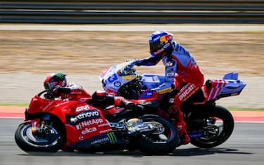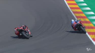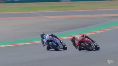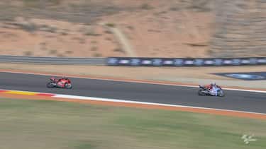 Brutto incidente a sei giri dal termine del GP di Aragon: a Bagnaia riesce il sorpasso all'esterno sul catalano per prendere la terza piazza, ma nel tentativo di riprendersi la posizione Alex travolge Pecco, che rimane incastrato con il braccio sotto la Ducati del rivale. Per fortuna, niente di rotto: ma in classifica il torinese scivola a -23 da Martin. Bagnaia: "Ho male alla spalla sinistra, ma non è rotta. Non è vero che Alex non mi ha visto, mi è venuto addosso pieno". Marquez: "Non sapevo fosse Pecco dietro di me, non l'ho visto. Avrebbe dovuto evitare lui il contatto, non io". L'episodio è stato a lungo sotto investigazione dei commissari, ma alla fine lo Stewards Panel non ha inflitto alcuna sanzione giudicandolo come incidente di gara