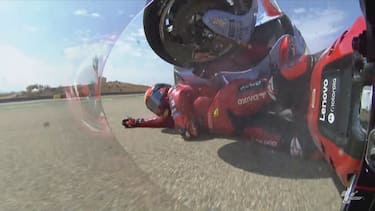 Bruttissima immagine, con Bagnaia travolto dalla moto del pilota spagnolo