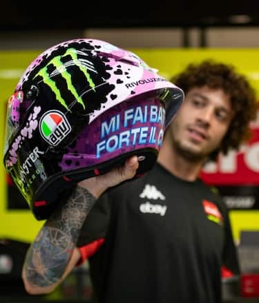 "Strobo Helmet" per Fabio Di Giannantonio. Il pilota del team Pertamina VR46 ha svelato un casco che i tifosi non faranno fatica a riconoscere