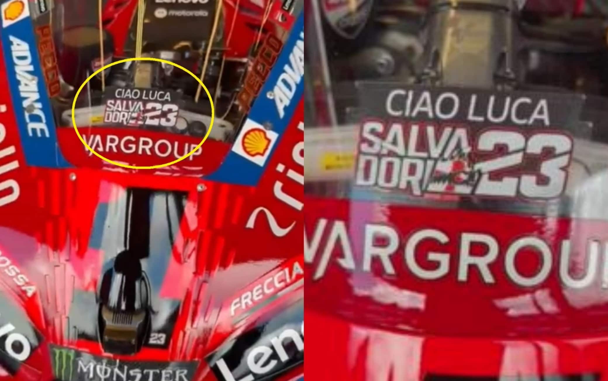 "Ciao Luca Salvadori 23". Questo è il messaggio presente sul cupolino delle Ducati di Bagnaia e Bastianini. Il campione del mondo aveva anticipato che avrebbe ricordato il pilota lombardo, morto a 32 anni in un incidente a Frohburg durante una tappa dell'IRRC. "Non sarà facile fare un omaggio per lui, perché nulla potrà compensare la sua perdita, ma proverò a portarlo con me perché era meraviglioso", aveva dichiarato Pecco in conferenza stampa a Misano