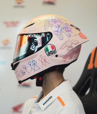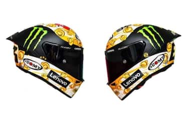 Per il GP dell'Emilia Romagna, secondo appuntamento stagionale a Misano, Pecco Bagnaia ha presentato un casco sul quale sono disegnati dei tortellini in brodo: "Un piatto che per me è casa e famiglia, da sempre - ha scritto su Instagram. È un grandissimo onore portare in pista questo casco realizzato insieme al mio amico Massimo Bottura, per omaggiare la realtà del 'Tortellante'". Casco speciale anche per Luca Marini, che ripercorre la storia d'amore con sua moglie Marta