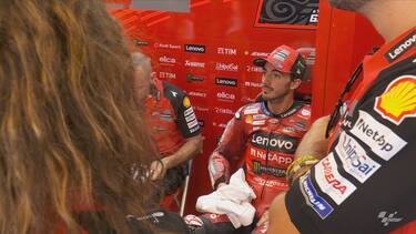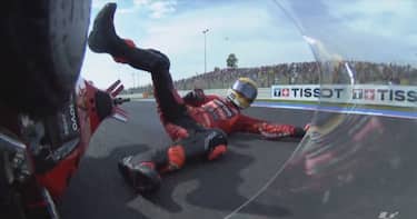 Dopo la caduta Bagnaia è tornato nel suo box e ha visto il finale della gara, poi trionfata dal suo compagno di squadra Bastianini davanti a Martin e Marc Marquez.